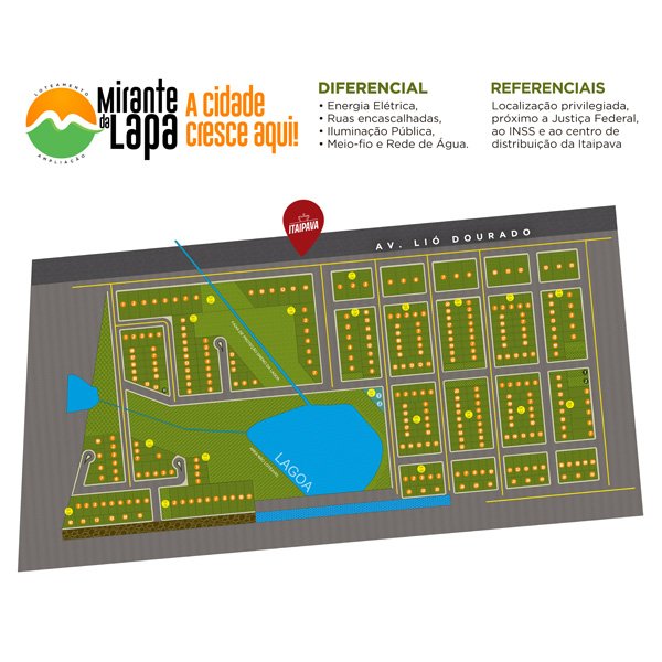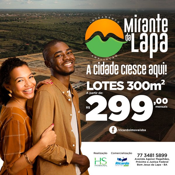 Localizado em uma área privilegiada. O Loteamento Mirante da Lapa comercializado pela Ricardo Imóveis em parceria com a HS Patrimonial é o ideal para você que quer morar ou investir em qualidade de vida e bem-estar. Situada na Avenida Agenor Magalhães próximo da Justiça Federal, INSS e do centro de distribuição da Itaipava.